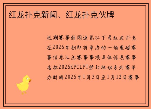 近期赛事新闻速览 以下是红龙扑克在2026年初即将举办的一场重磅赛事信息汇总: | 赛事事项 | 具体信息 | | :-- | :-- | | 赛事名称 | 2026 KPC × LPT 梦幻联动系...